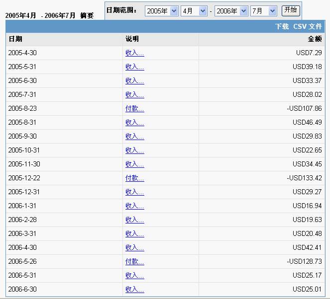2004年4月到2006年6月论坛的Googleadsense广告收入情况