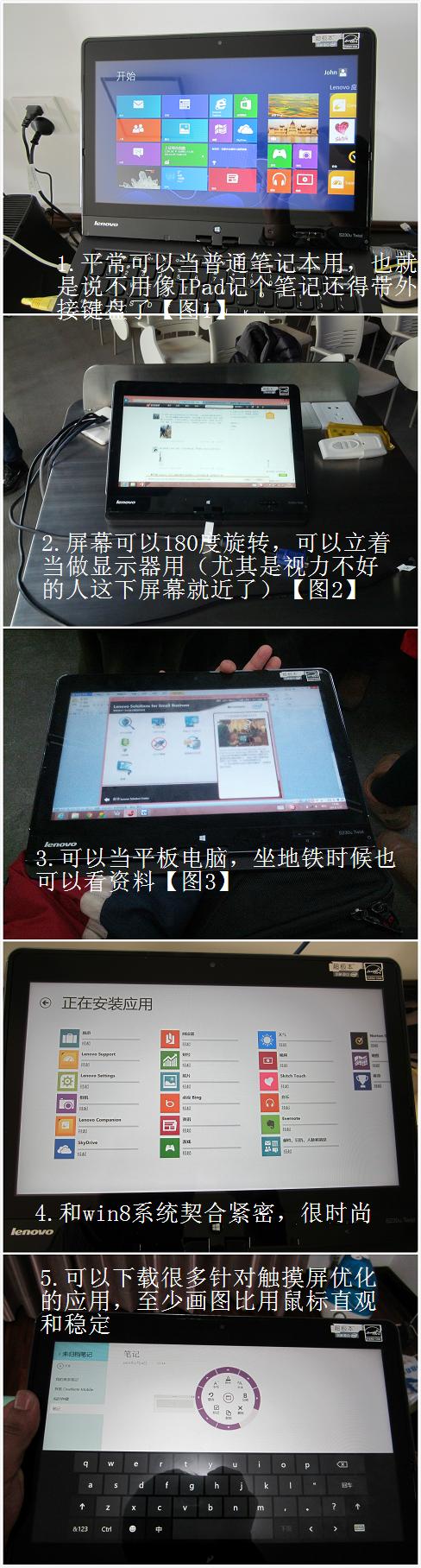 我看上thinkpad s230u 是因为有一次我在我们医院门口的超市买东西,发现老板正在用一个比较大屏幕的“平板电脑”玩纸牌,我觉得挺新潮,仔细一看发现还是windows系统的,那时我正为很多程序在不同平台上不兼容而郁闷,我就跟老板聊了聊。