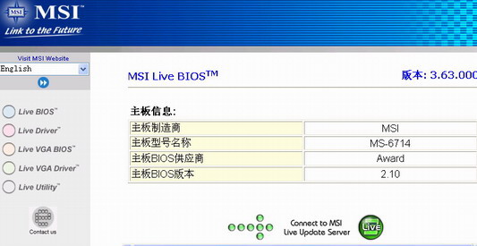 小提示:按照升级BIOS的方法点击“Live Driver”可以升级微星相关的驱动程序,例如声卡驱动、网卡驱动以及Intel INF Update等,另外,如果你的显示支持MSI Live Update3的升级功能,那么就可以分别点击“Live VGA BIOS及“Live VGA Driver”来升级显卡的BIOS和驱动程序,非常方便。