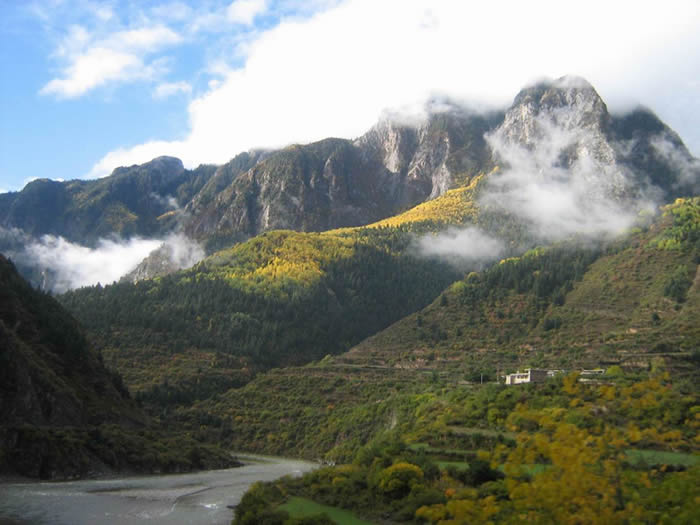 山好高呀!!好像还有一条河!!