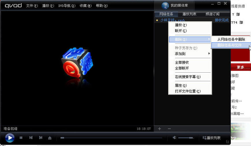 下载到c:/Media文件下,看完电影后,在qvod播放器网络任务列表中,