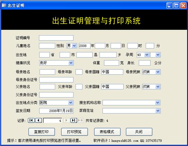 出生证明打印软件