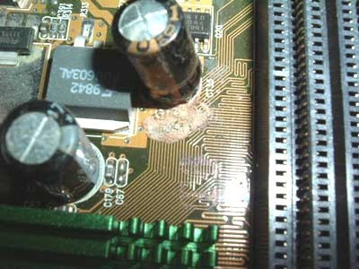 去年我帮人修了3个主板,都是电容爆浆,买同型号的换上就OK了,很便宜的哦。