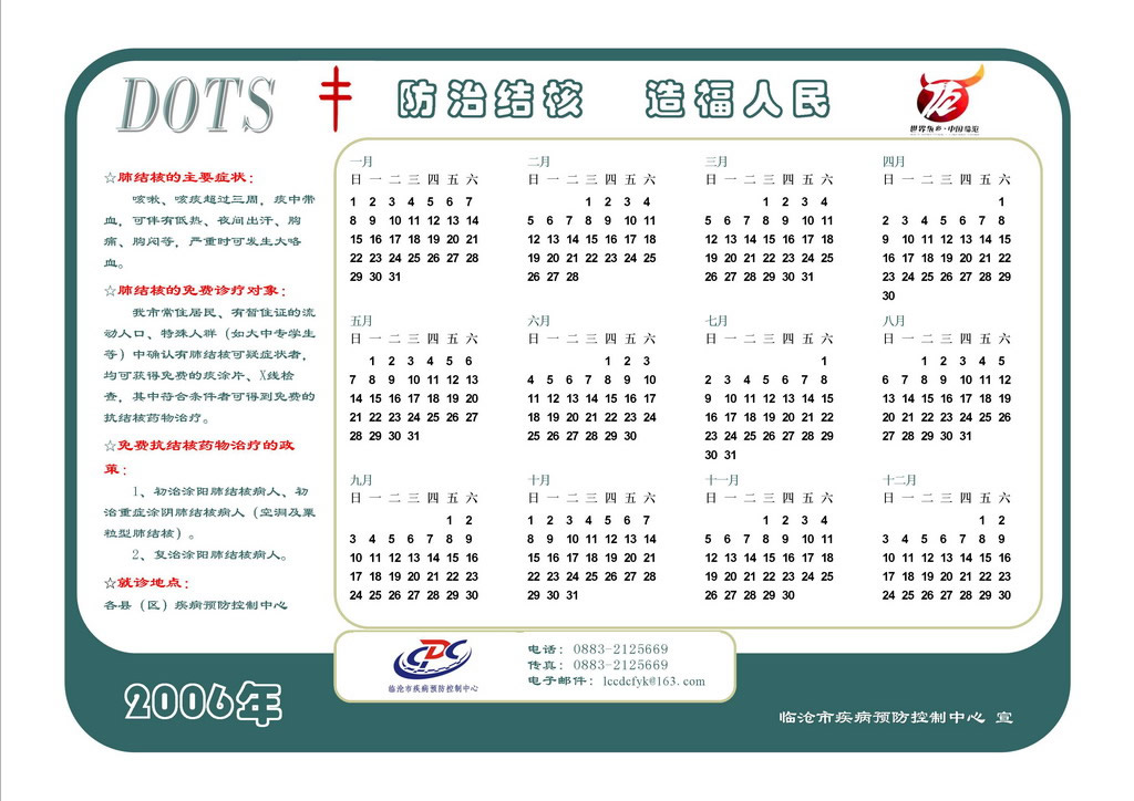 2006年“3.24”宣传日快到了,希望大家将自己做的宣传画、册等资料共享,为我们的结防事业做点小事,先发个自己做日历给大家共享,望大家批评指正!