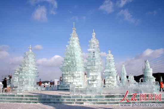 大理三塔、华表大门、杭州古塔等许多大型冰雕