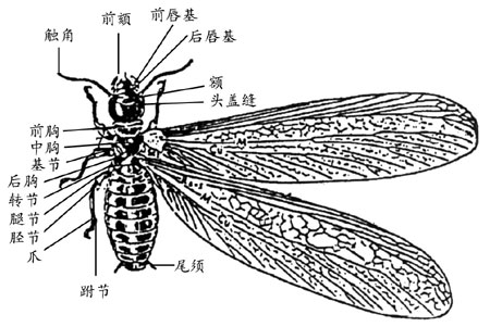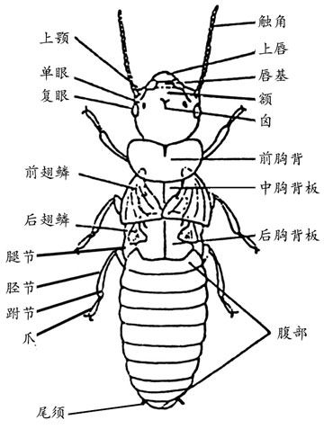 我们将有翅成虫和兵蚁代表原始型与蜕变型分别进行有关形态特征的叙述。