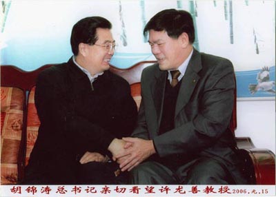 2006年1月15日上午9:30,中共中央总书记胡锦涛同志在百忙之中来到军门社区看望了疾病预防控制专家许龙善同志。在许龙善同志家,胡总书记亲切地与许龙善握手交谈,并详细询问了许龙善同志的生活和工作情况。许龙善同志汇报说,在中央和省委的领导下,福建人民齐心协力,广大医务工作者尽职尽责,取得了抗击非典的重大胜利。当前,禽流感肆虐全球,我们正积极迎战,虽然目前对禽流感流行规律还不是很清楚,但我们有信心取得最后胜利。听完许龙善同志的汇报,胡总书记阐述了禽流感对国民经济的影响和对人民健康造成的损失,指示我们对禽流感要依法防治,科学防治,群策群力,希望广大科技工作者要努力探索。