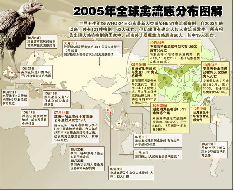 » 2005年全球禽流感分布图解