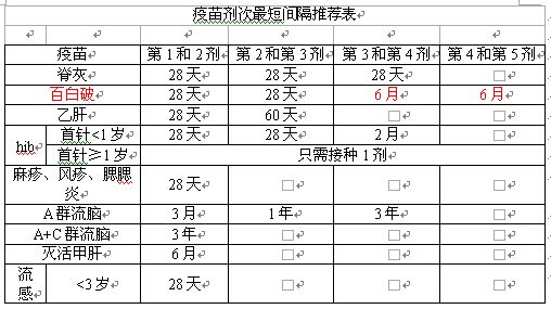 以下是引用my_cexopl在2006-10-25 15:01:00的发言: 难道我的表中没有按《预防接种规范》要求吗?那么请问《预防接种规范》规定了最短间隔吗?补种时,怎么来执行?我们的《预防接种规范》是不是没写清楚?